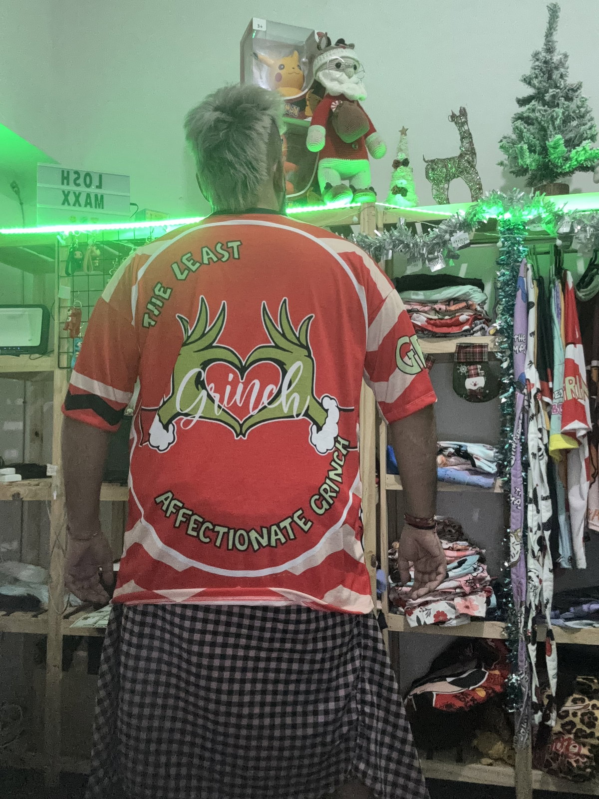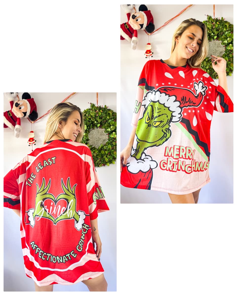 Remeron talle 6 Grinch rojo y rosa